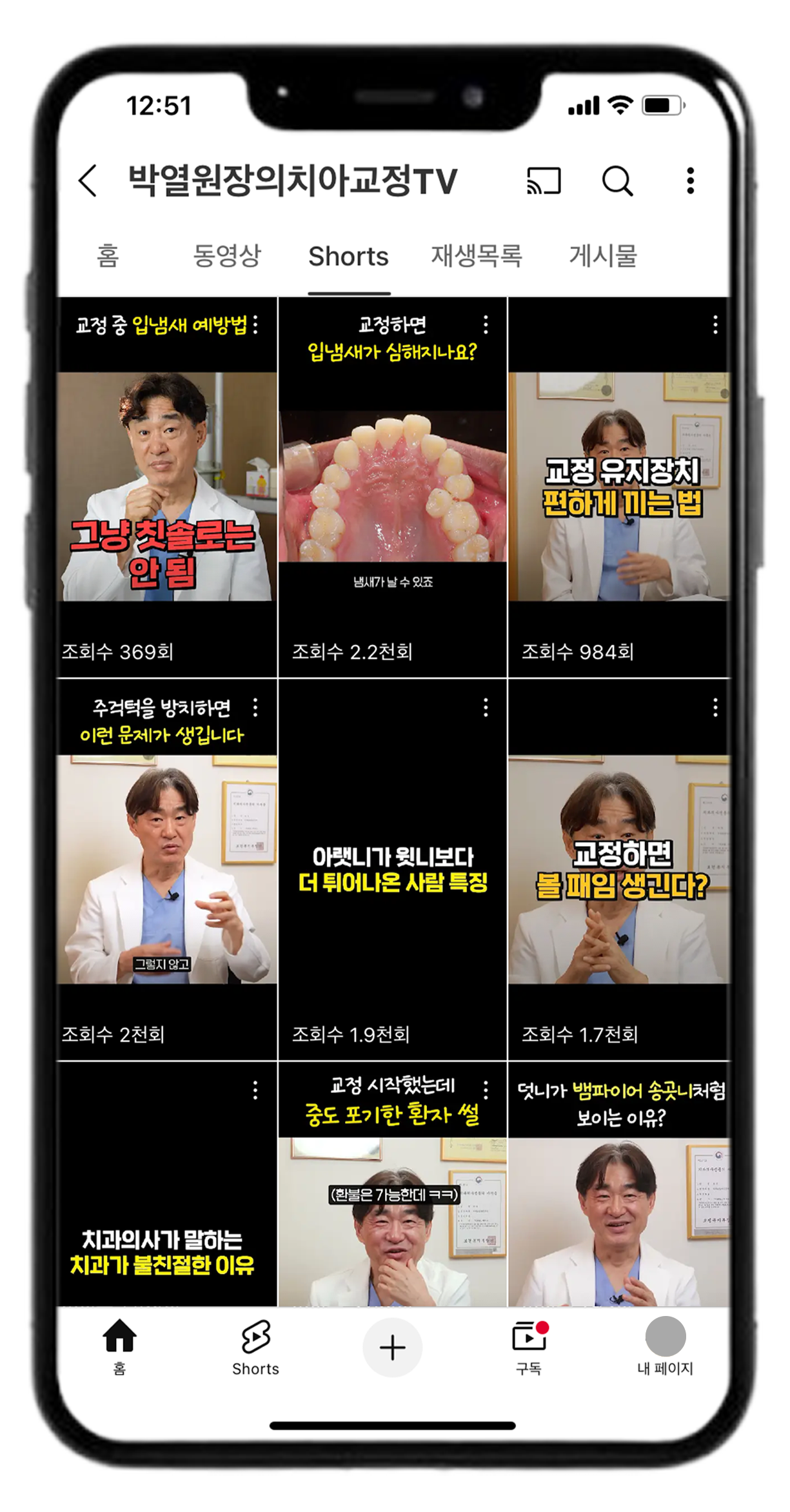 병원 유튜브 채널도 롱폼뿐 아니라 쇼츠 물량이 필수가 되었습니다.